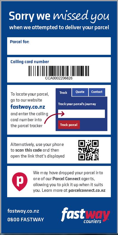 An authority to leave is a form which gives Aramex New Zealand (formerly Fastway Couriers) permission to leave your parcel without obtaining a signature. It's located on the reverse of your